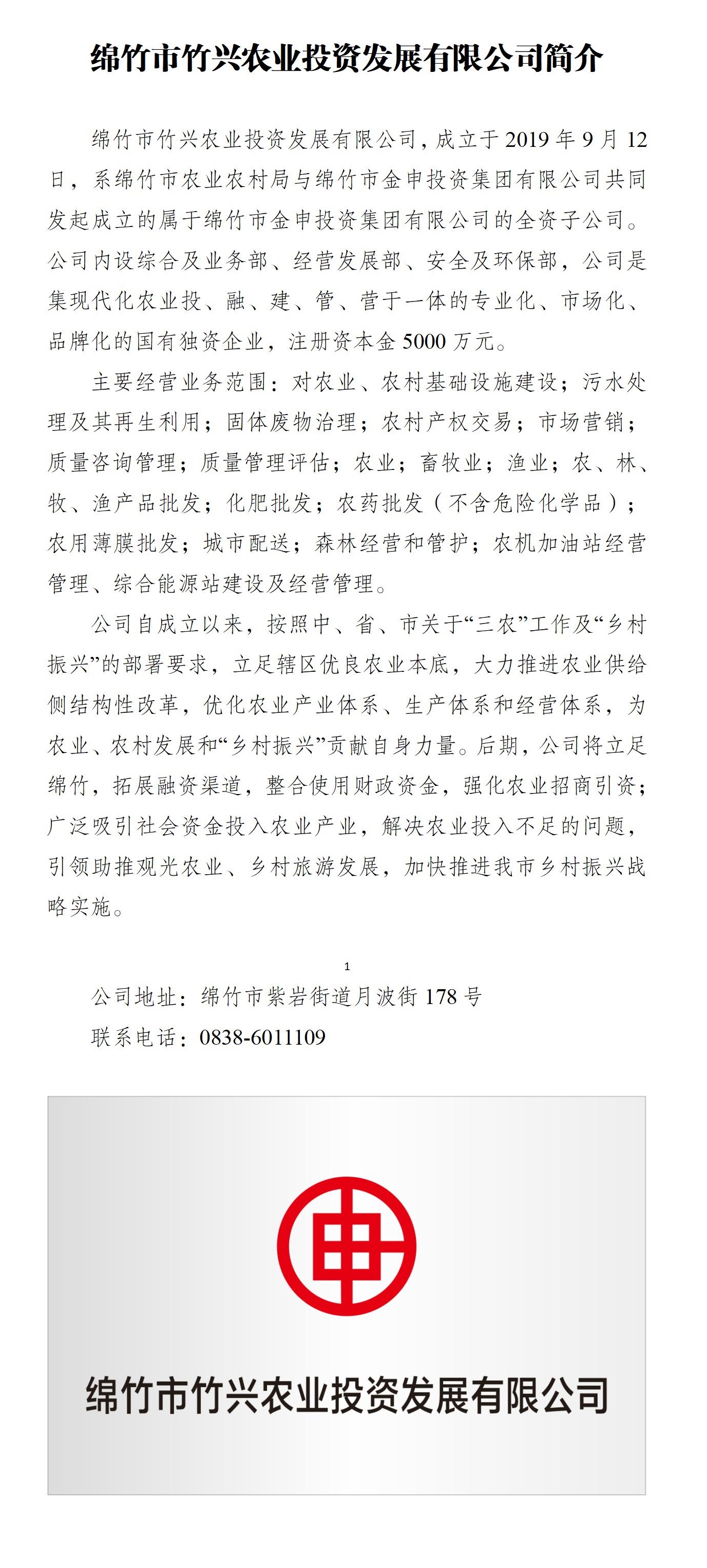 綿竹市竹興農(nóng)業(yè)投資發(fā)展有限公司