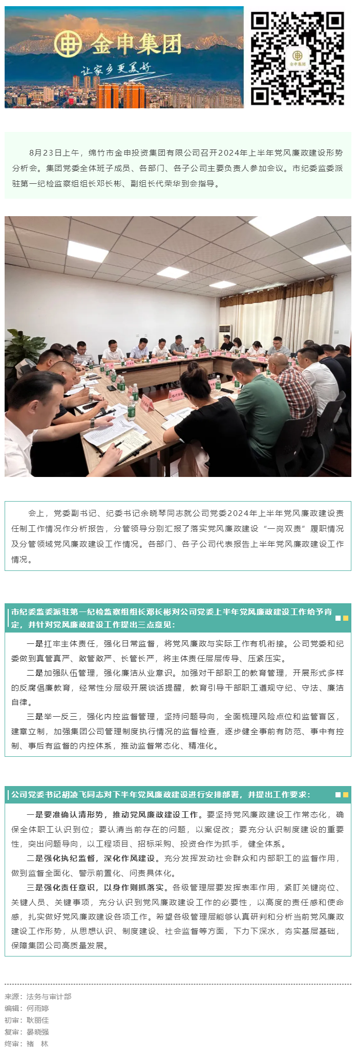 金申投資集團(tuán)召開2024年上半年黨風(fēng)廉政建設(shè)形勢分析會