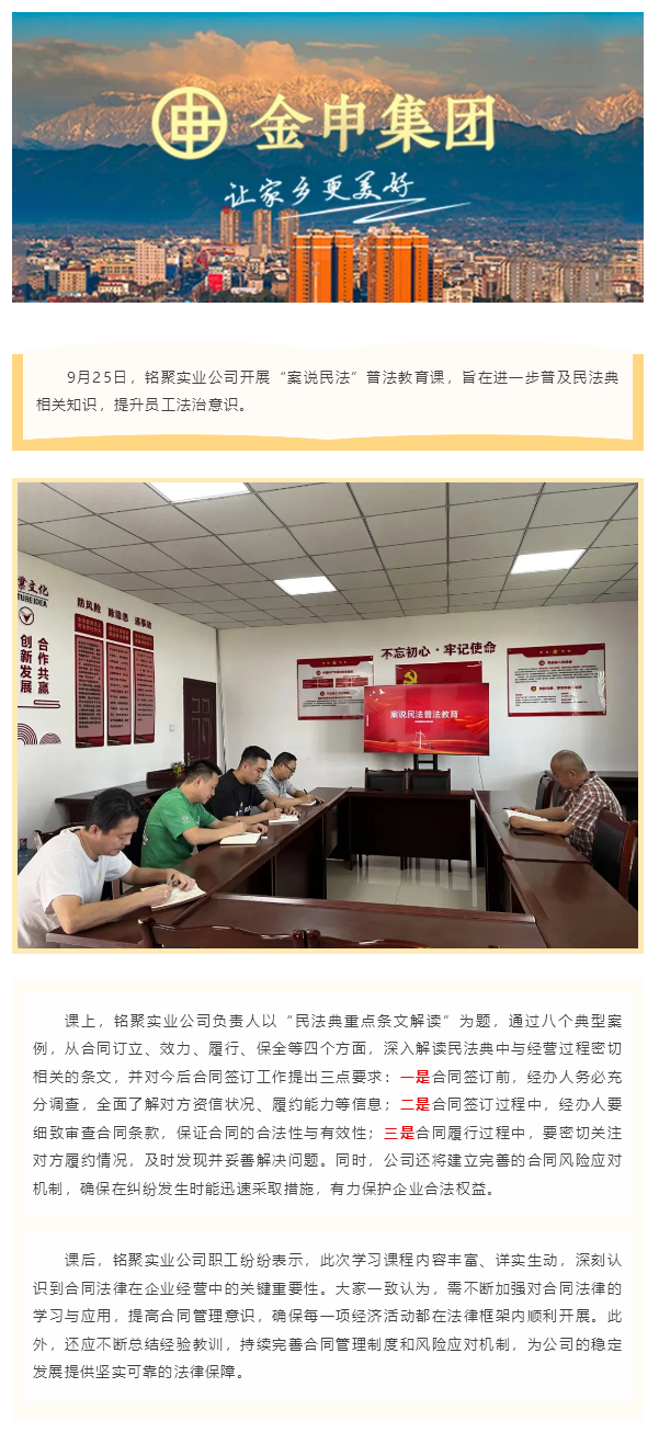 銘聚實(shí)業(yè)開展“案說民法”普法教育