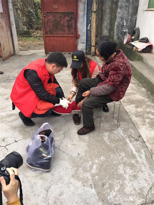 上午9時(shí)許,參加活動的志愿者身著統(tǒng)一標(biāo)志馬甲,帶上棉被、棉帽、棉鞋等愛心物資來到漢旺白果村、新開村。團(tuán)員志愿者們分成兩個(gè)小組分別對6戶貧困戶和6戶五保戶進(jìn)行上門慰問。在新開村貧困老人潘孝秀家里,老人因病不起,躺在涼椅上,房間光線昏暗,空氣中彌漫著一股酸臭味,志愿者為老人送去尿不濕、棉被等物品,幫老人將居住環(huán)境進(jìn)行了清掃,老人緊緊握住團(tuán)員的手連聲道謝,感謝黨和社會的關(guān)懷。志愿者們每到一戶困難家庭,都向他們噓寒問暖,送去慰問品。對居住環(huán)境臟、亂、差的,團(tuán)員們會自覺的幫助打掃衛(wèi)生、整理物品、了解他們的健康狀況及生活中的困難,并叮囑貧困戶、五保戶們有問題隨時(shí)聯(lián)系,公司團(tuán)委將給予盡可能的幫助。