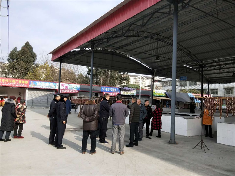 為做好這次秩序整治工作,2018年1月8日上午,綿竹市城管局監(jiān)察大隊、劍南鎮(zhèn)及茂泉社區(qū)與金申集團公司資產(chǎn)管理部及宏泰物業(yè)公司的幾方工作人員一道,到茂泉市場進行了現(xiàn)場聯(lián)合辦公。著重對市場內(nèi)的環(huán)境衛(wèi)生、經(jīng)營品種的區(qū)域劃分及夜市攤位進行了重新布局,并對近期占道經(jīng)營商戶入市經(jīng)營的服務(wù)工作作了具體的安排。