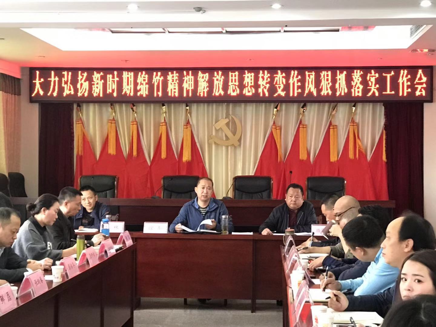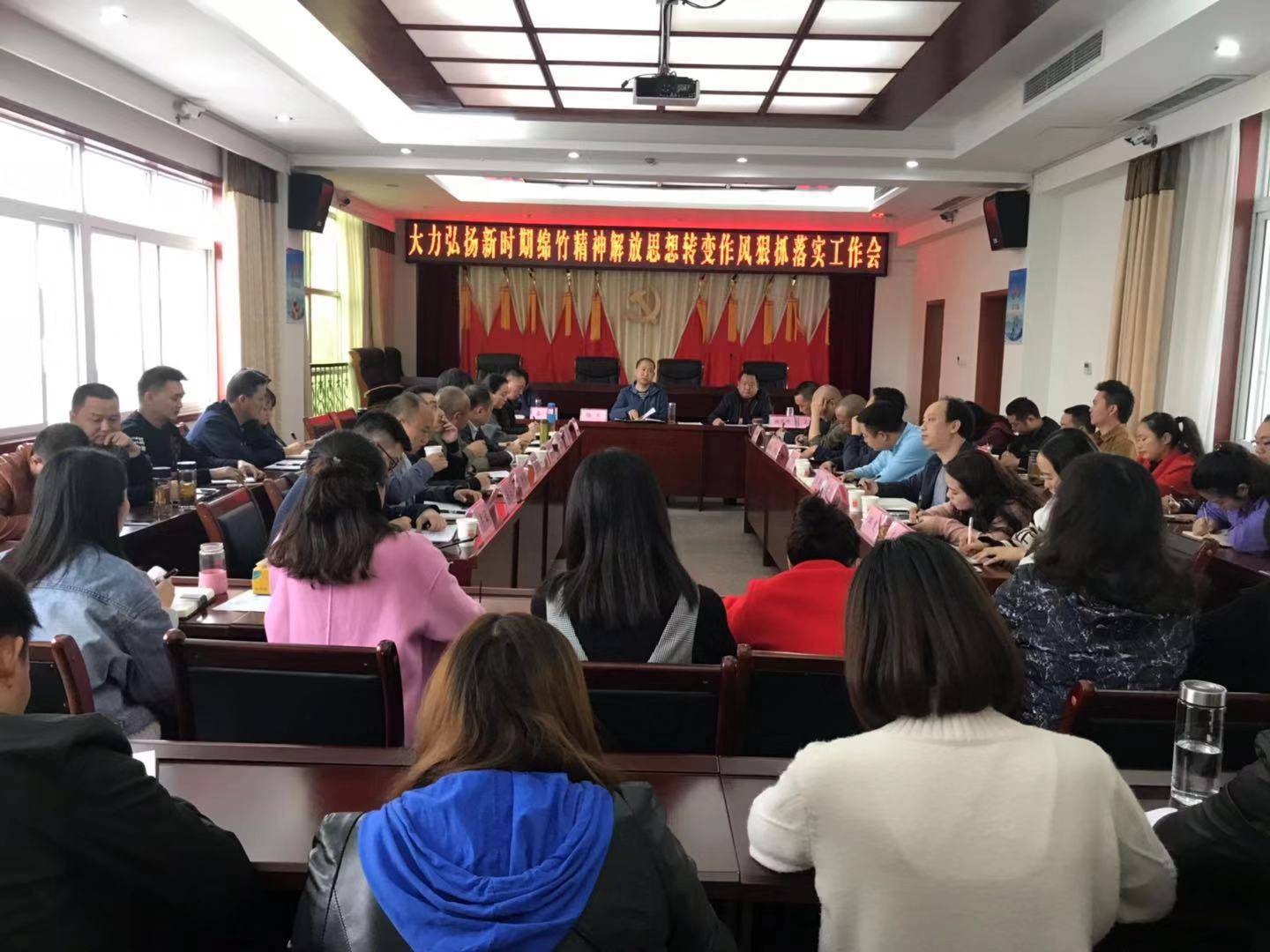 2018年11月2日上午,金申集團(tuán)公司組織全體干部職工召開(kāi)大力弘揚(yáng)新時(shí)期綿竹精神解放思想轉(zhuǎn)變作風(fēng)狠抓落實(shí)工作會(huì)。