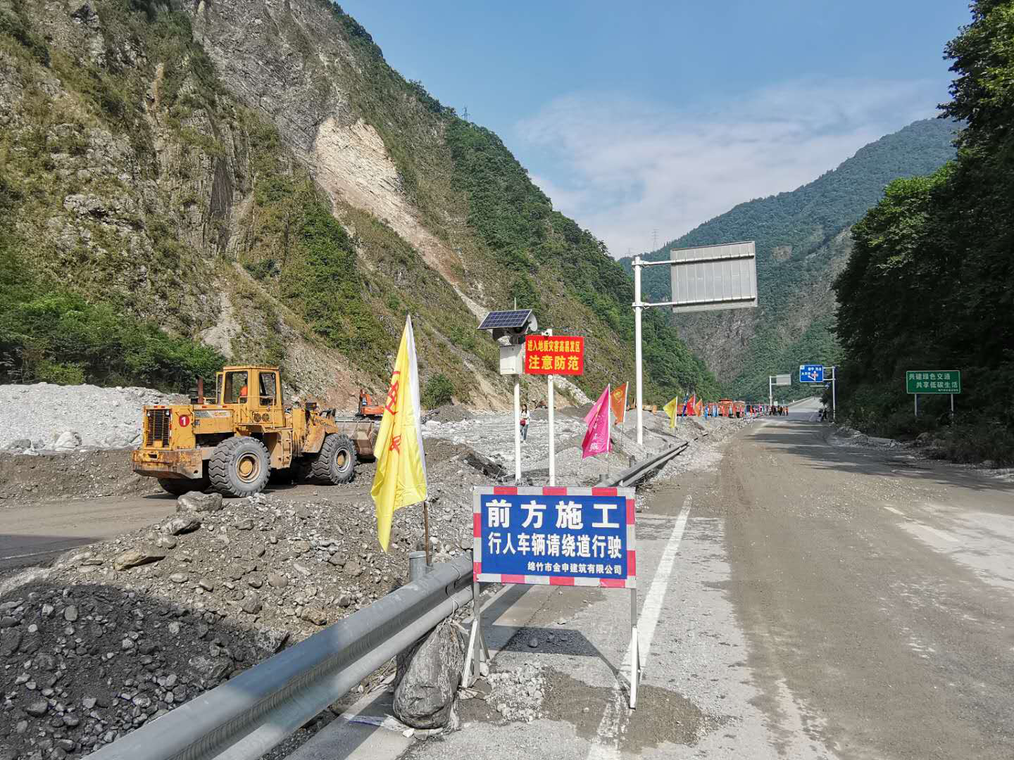 為防止次生災(zāi)害發(fā)生,我公司在各個(gè)險(xiǎn)情點(diǎn)落實(shí)專人值守。在半幅通行路段,設(shè)置醒目警示標(biāo)志,積極開展搶通保暢工作。以災(zāi)情為命令,用實(shí)際行動(dòng)踐行金申建筑人的初心和使命,確保人民的財(cái)產(chǎn)和生命安全。