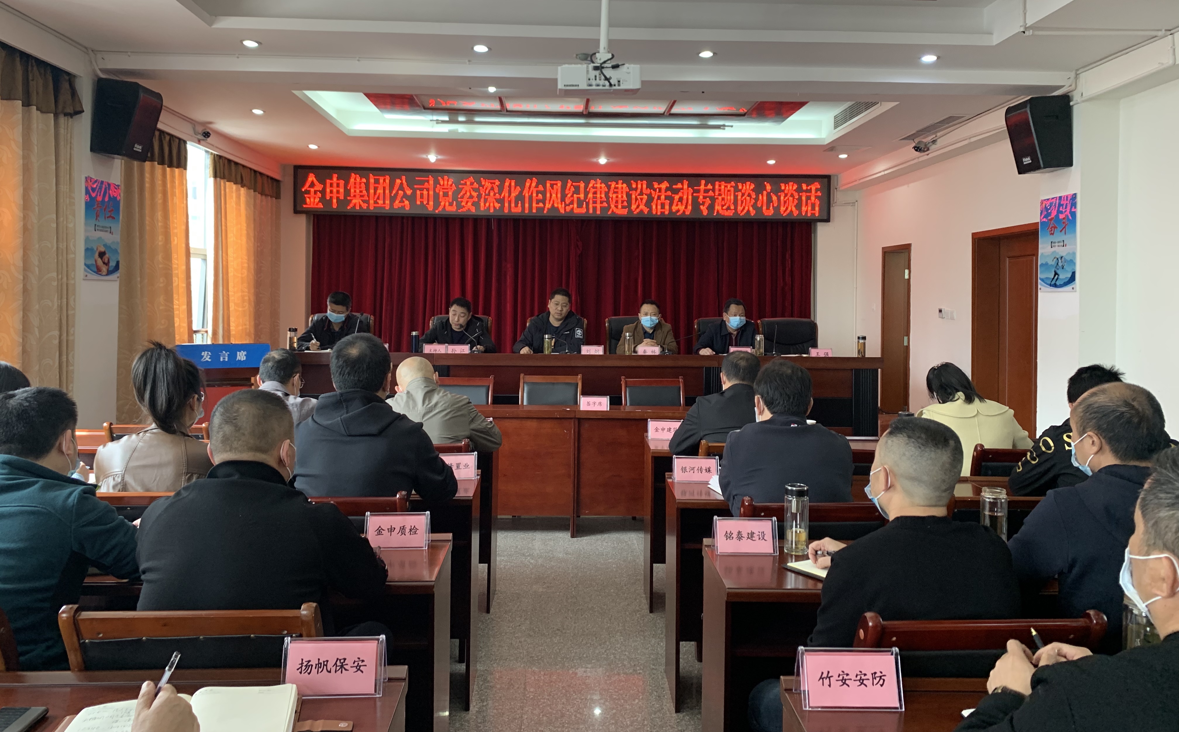 2022年4月2日,綿竹市金申投資集團有限公司召開2022年度子公司目標(biāo)任務(wù)部署大會暨深化作風(fēng)紀律建設(shè)活動專題談心談話,集團領(lǐng)導(dǎo)班子、中層副職及以上人員參加會議。