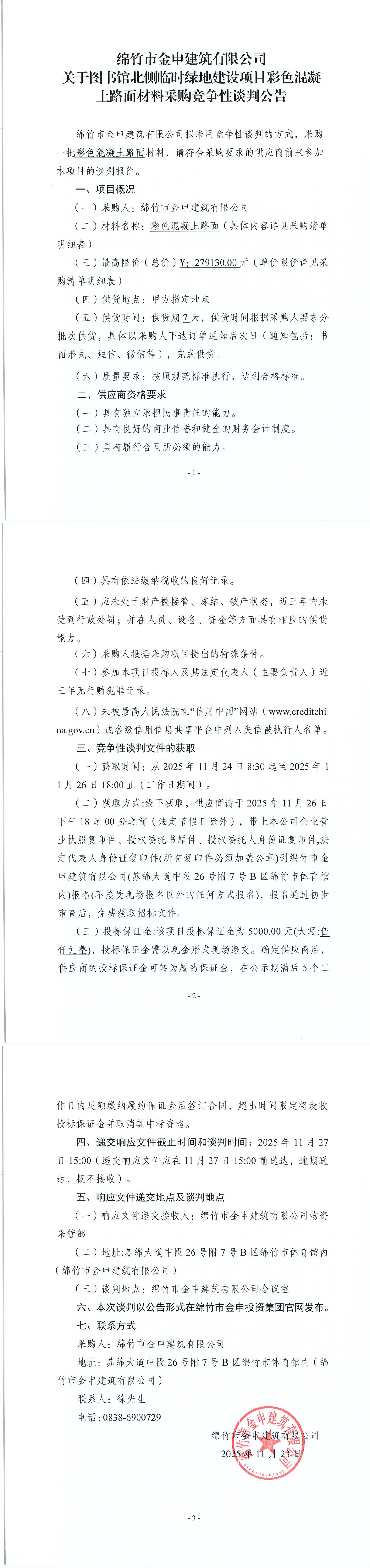 關(guān)于圖書館北側(cè)臨時(shí)綠地項(xiàng)目(彩色混凝土路面)材料采購(gòu)競(jìng)爭(zhēng)性談判公告