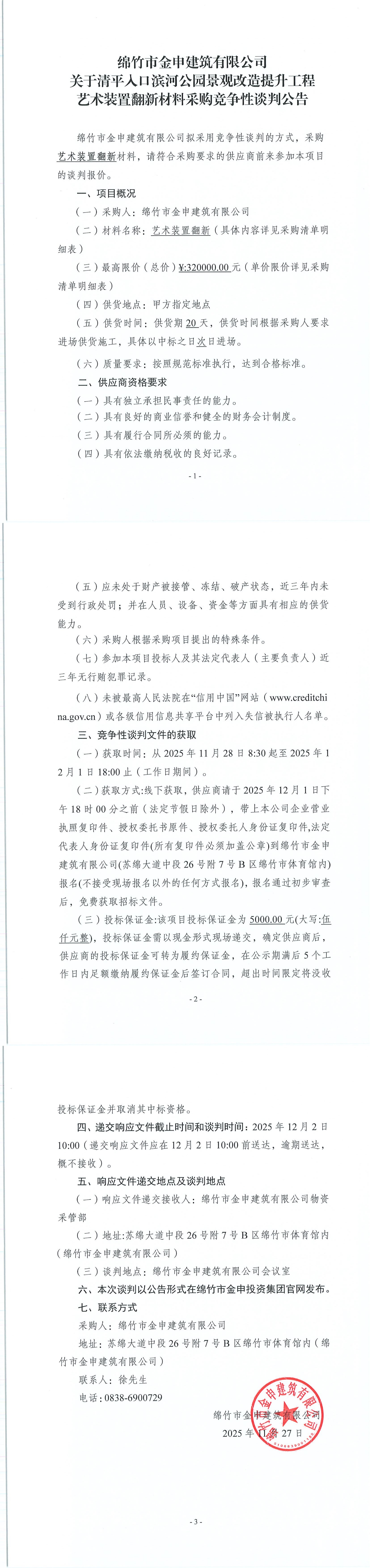 關(guān)于清平人口濱河公園景觀改造提升工程藝術(shù)裝置翻新材料采購(gòu)競(jìng)爭(zhēng)性談判公告