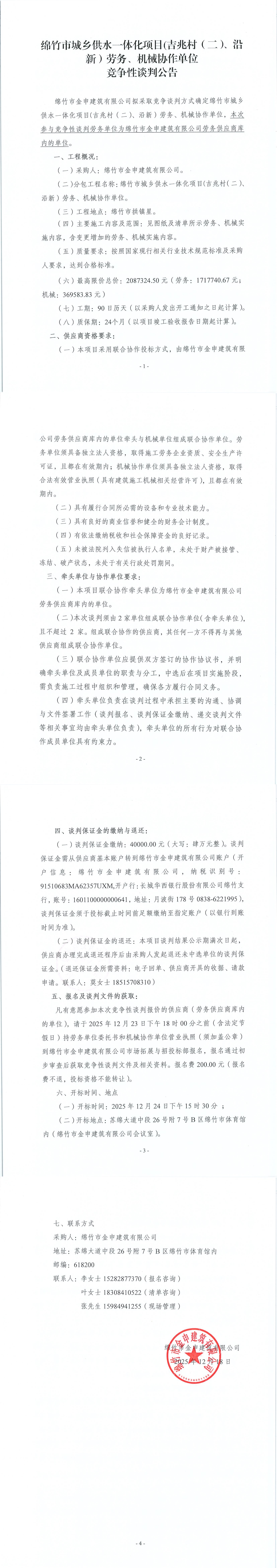 綿竹市城鄉(xiāng)供水一體化項(xiàng)目(吉兆村(二)、沿新)勞務(wù)、機(jī)械協(xié)作單位(招標(biāo)公告)