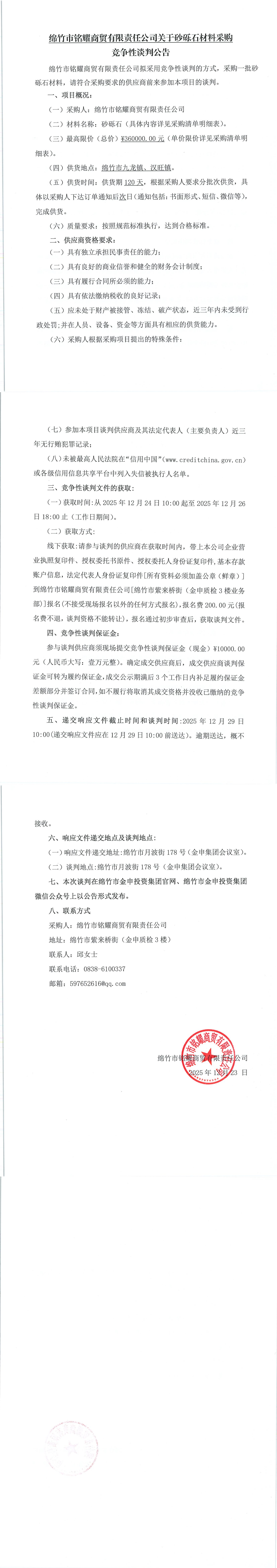 銘耀商貿(mào)關(guān)于砂礫石材料采購(gòu)競(jìng)爭(zhēng)性談判公告