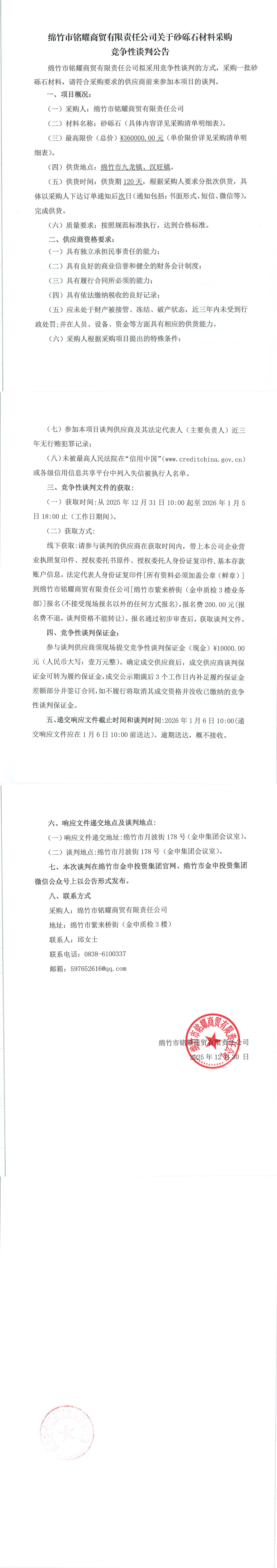銘耀商貿(mào)關(guān)于砂礫石材料采購(gòu)競(jìng)爭(zhēng)性談判公告