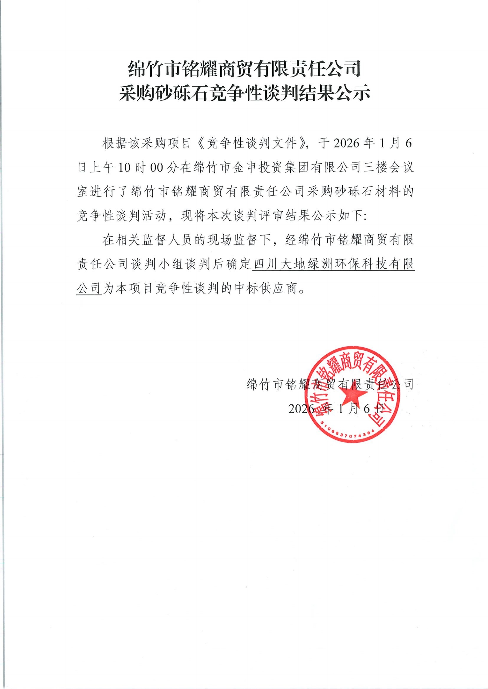 銘耀商貿(mào)采購砂礫石競爭性談判結(jié)果公示