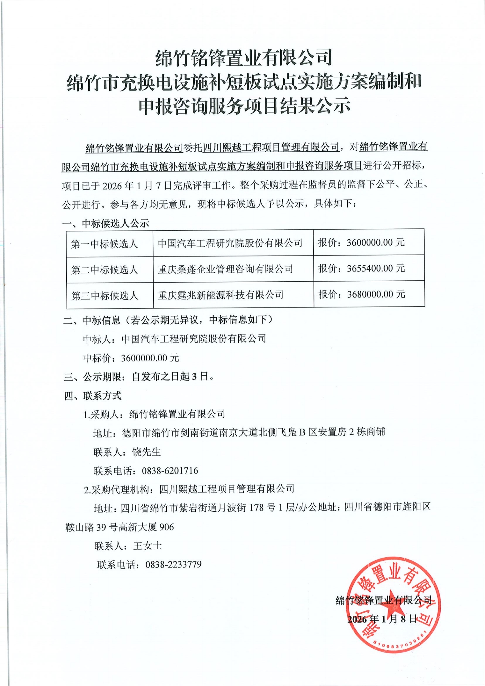 綿竹市充換電設(shè)施補(bǔ)短板試點實施方案編制和申報咨詢服務(wù)項目結(jié)果公示