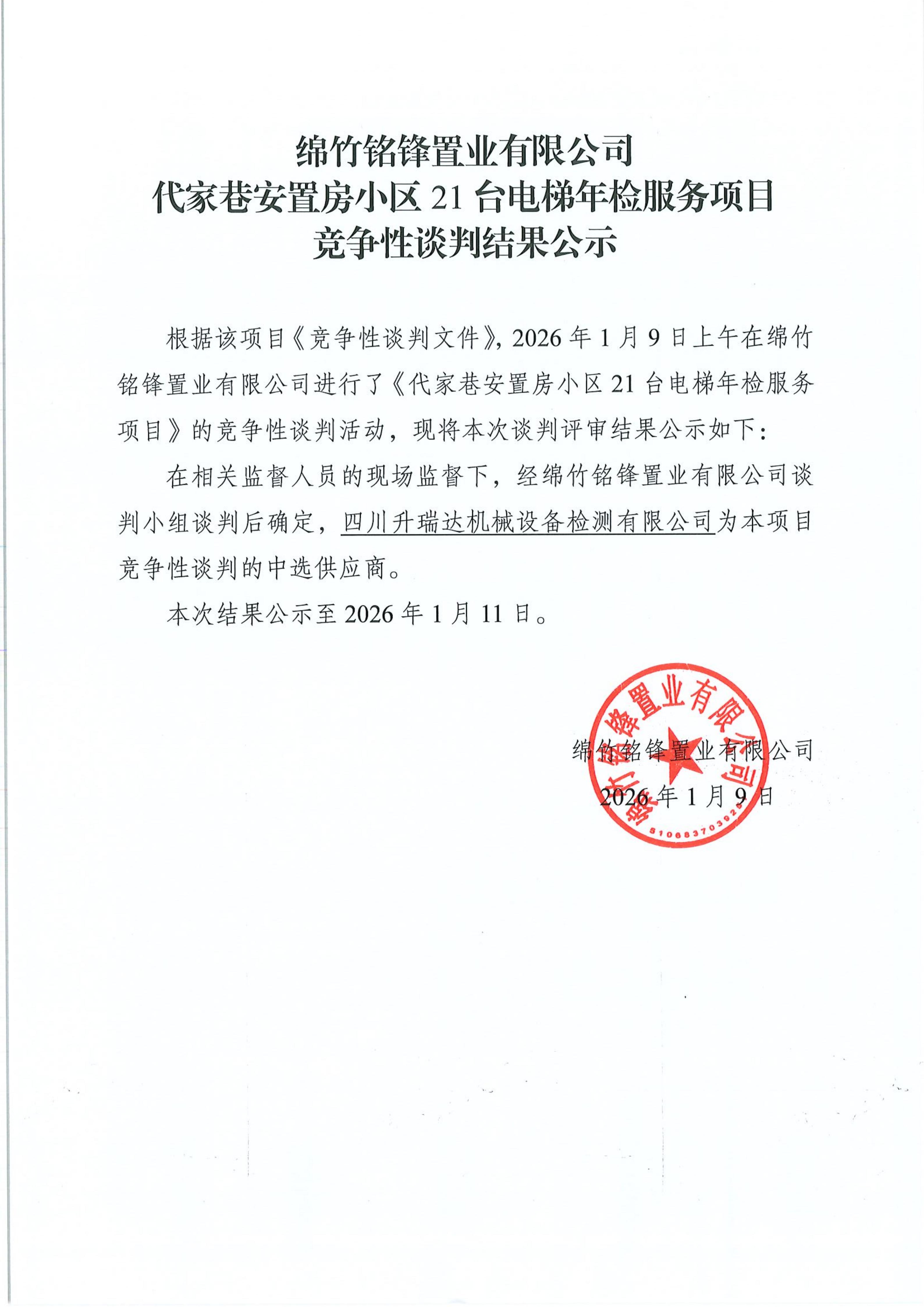 代家巷安置房小區(qū)21臺(tái)電梯年檢服務(wù)項(xiàng)目競爭性談判結(jié)果公示