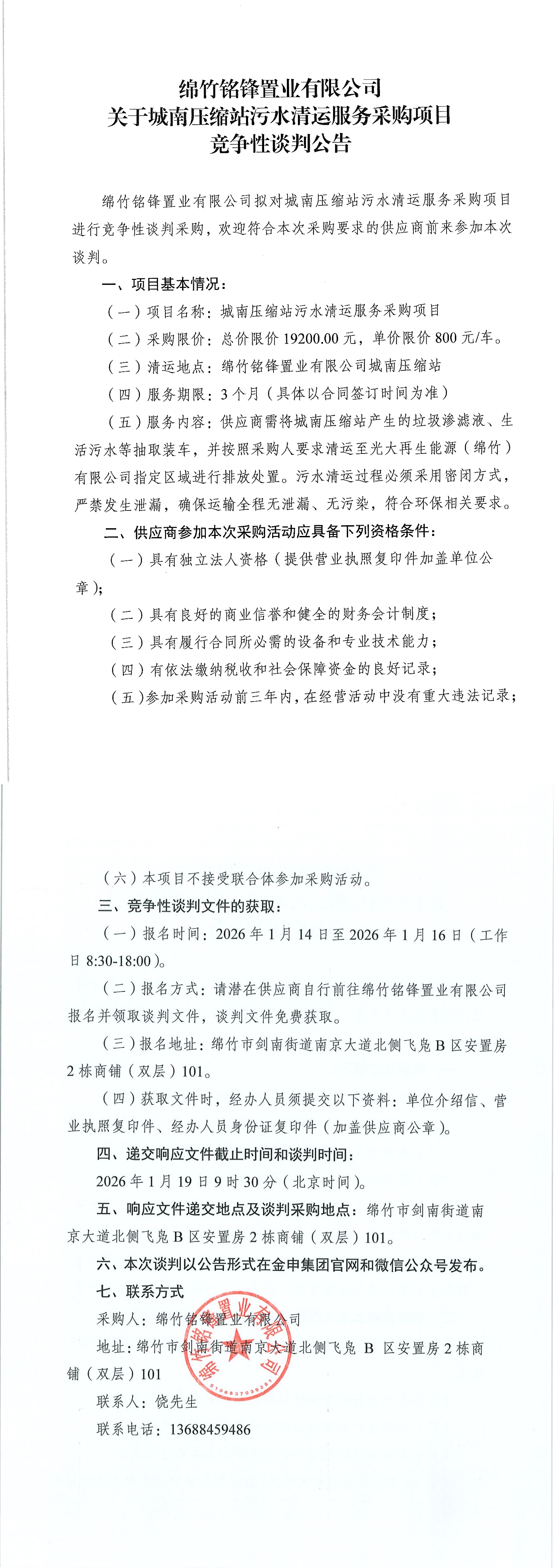 城南壓縮站污水清運(yùn)服務(wù)采購(gòu)項(xiàng)目競(jìng)爭(zhēng)性談判公告
