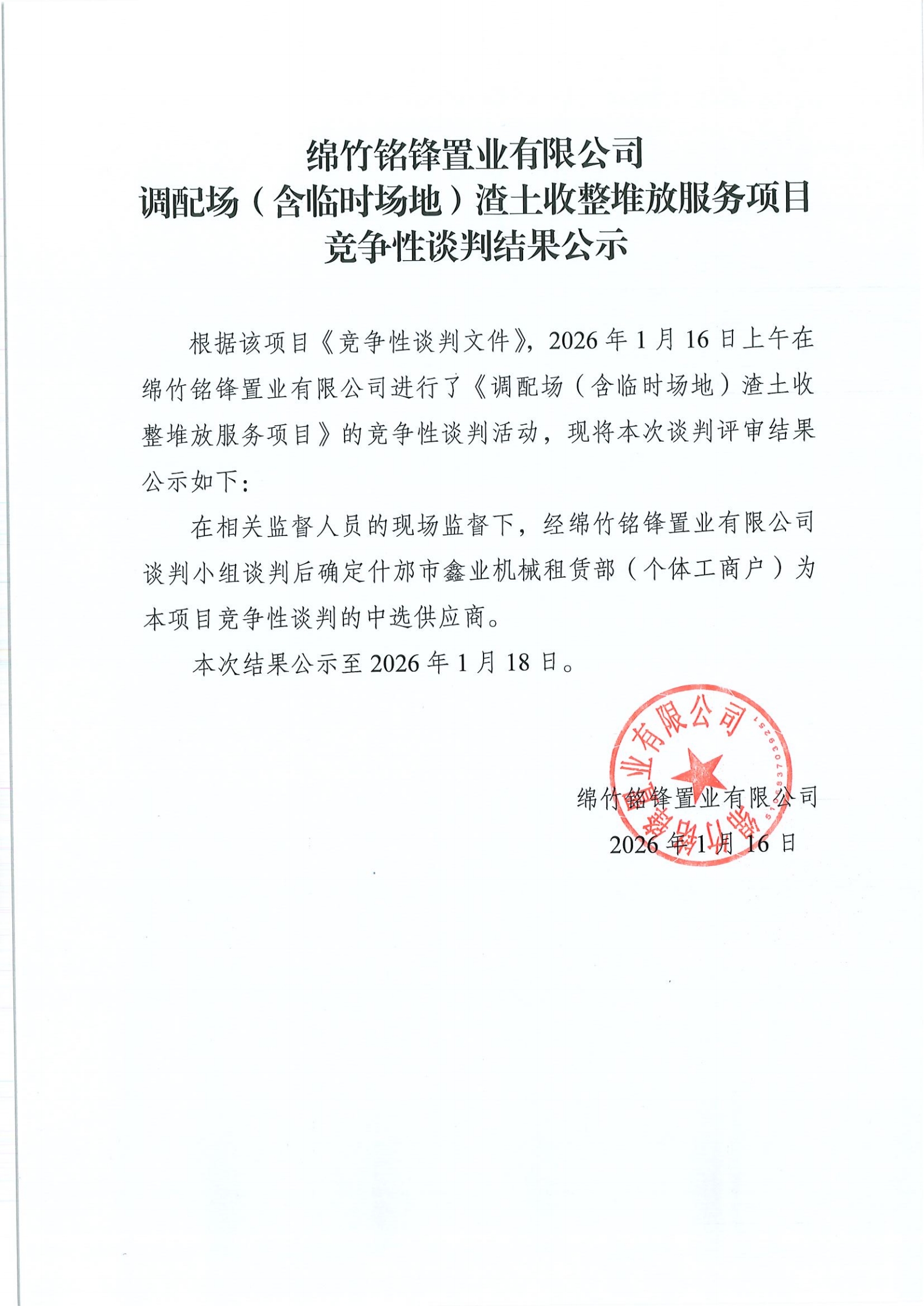 調(diào)配場(含臨時(shí)場地)渣土收整堆放服務(wù)項(xiàng)目競爭性談判結(jié)果公示