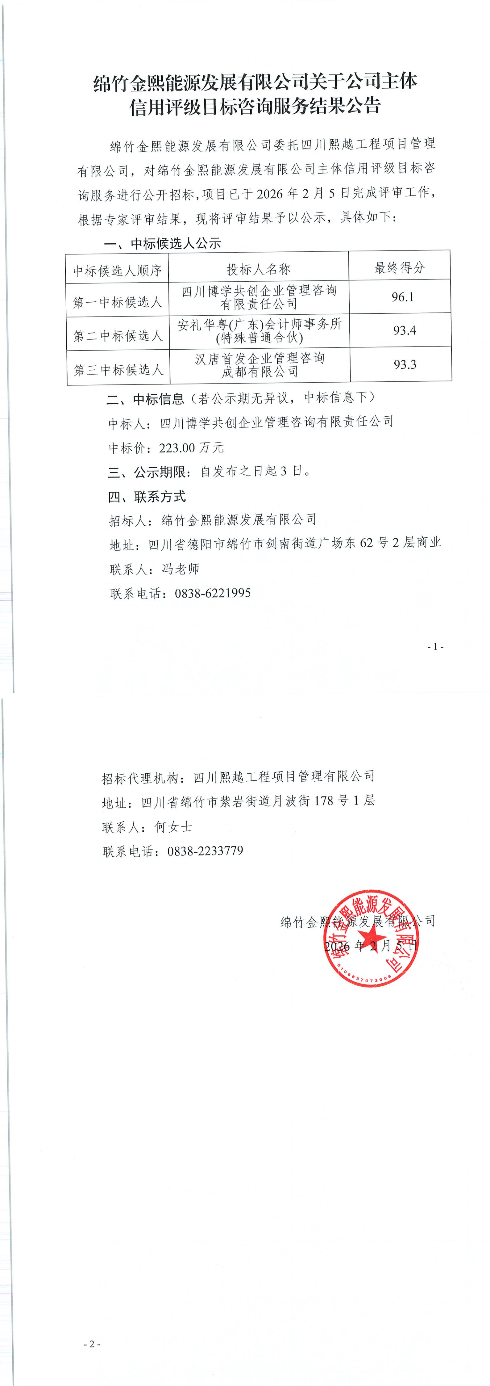 金熙能源關(guān)于公司主體信用評級目標(biāo)咨詢服務(wù)結(jié)果公告
