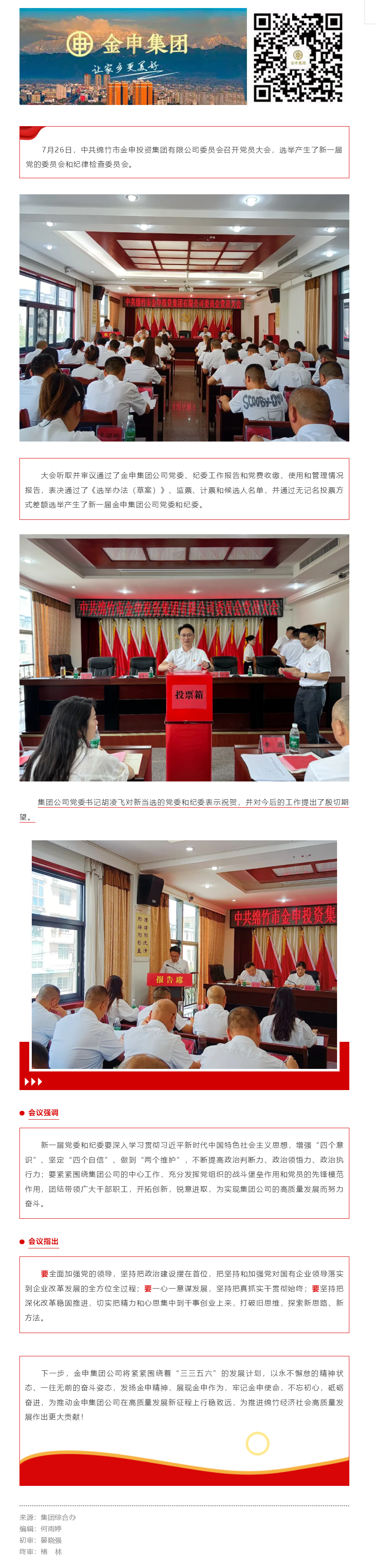 金申集團(tuán)公司圓滿完成黨委、紀(jì)委換屆選舉工作